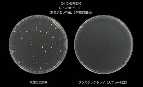 試験の検体となる、黄色ブドウ球菌・肺炎桿菌・MRSAの抗菌試験に合格。