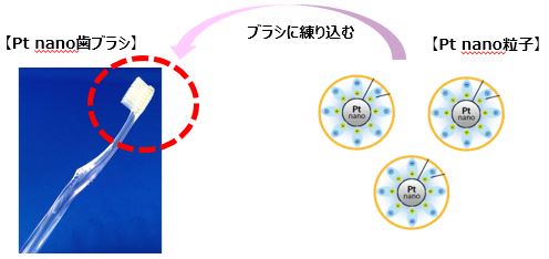 ブラシ部(毛)にプラチナナノ(Pt nano)溶液を練り込み加工し、口内の歯周病菌等の予防効果が期待できます。